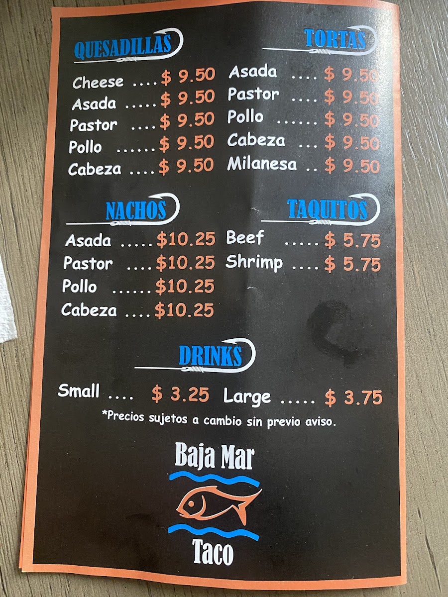 Baja Mar Taco also offers a diverse selection of sides to complement your meal, including cheesy beans and rice, guacamole (an absolute steal at just $0.75!), and crispy chips that are perfect for dipping. Whether you’re in for a quick lunch or a family gathering, there's something for everyone in this cozy eatery.